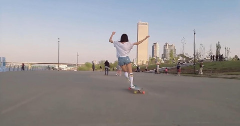 梦幻华尔兹!清新少女在滑板上翩翩起舞