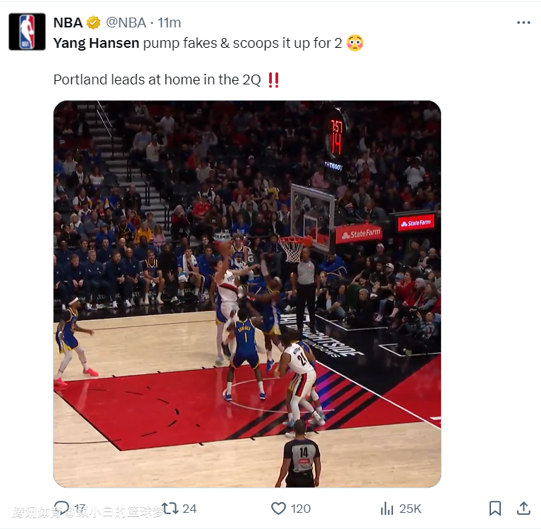 广东媒体人麦穗丰:印象中杨瀚森在CBA几乎没这么打过,去开拓者几个月就学会了小前锋打法,蹲底角+晃人+慢三步+低手上篮,在CBA会让他这么打吗?去NBA取经有效。