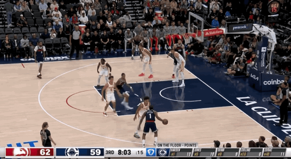 易边再战,约翰逊上篮得手,祖巴茨勾手打进,波尔津吉斯撤步跳投。祖巴茨突破得分,里萨谢三分命中,老鹰连得6分试图拉开分差,邓恩三分命中,哈登打进2+1,快船打出一波10-0高潮反超老鹰4分。约翰逊空切暴扣,奥孔古上篮打进,大洛佩斯三分命中,哈登突破得手。肯纳德补篮打进,奥孔古空接上篮,老鹰连得6分,小琼斯2罚1中。克雷伊奇命中全场第5记三分,两队获得罚球机会,老鹰取得3分领先优势。三节比赛结束,老鹰79-76领先快船。